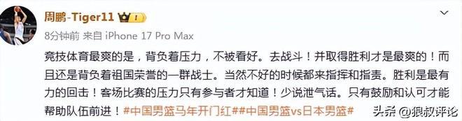 深圳男篮球员周鹏发文点评: