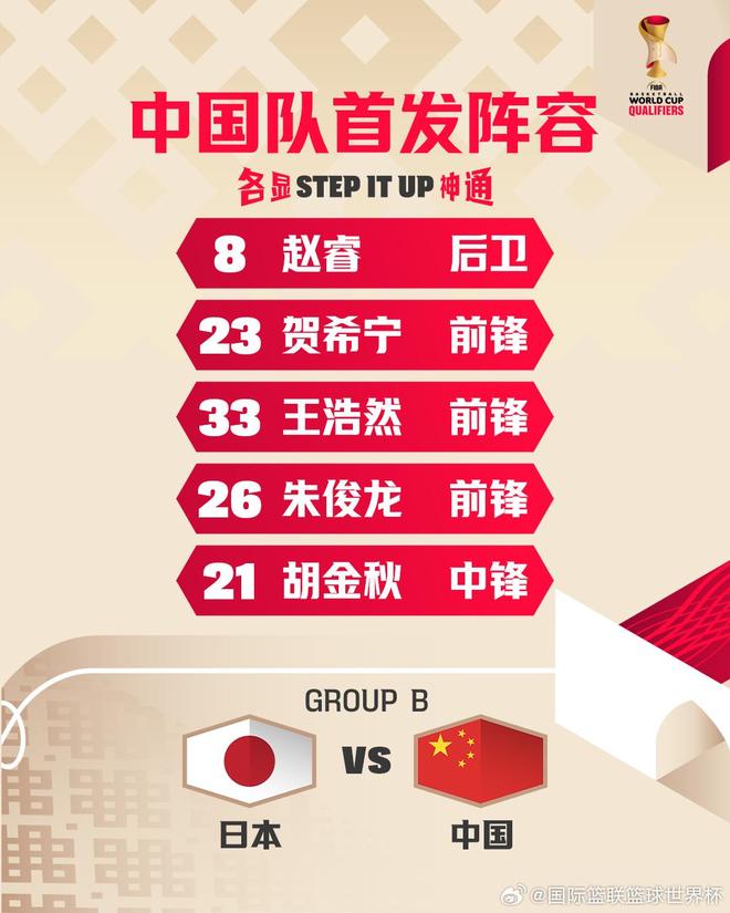 此役,中国队主教练郭士强安排胡金秋、赵睿、贺希宁、朱俊龙、王浩然首发。其中,王浩然迎来国家队首秀。日本队则安排斋藤拓实、渡边雄太、马场雄大、西田优大、科克出战。